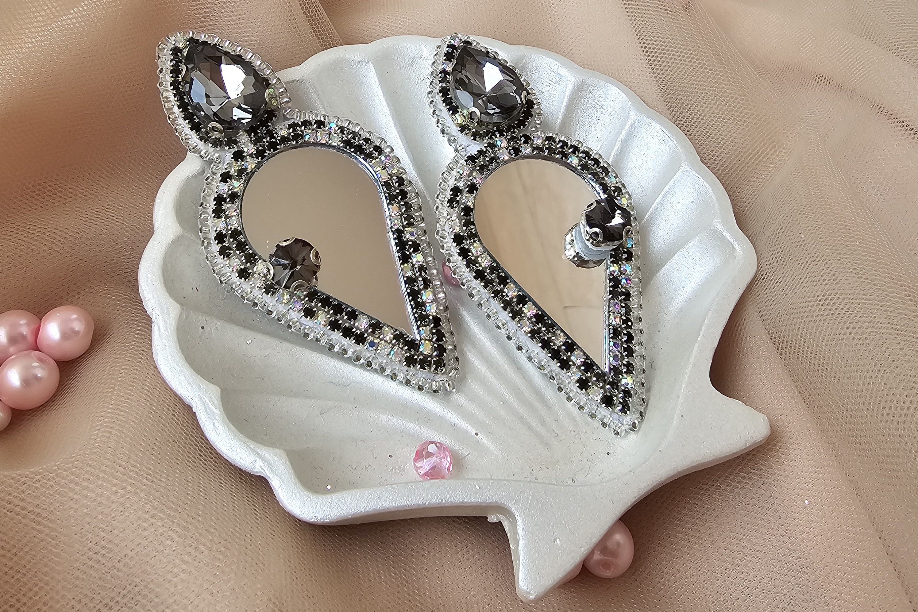 گوشواره دست ساز جواهردوزی زنانه با سنگ دودی،آینه و نگین