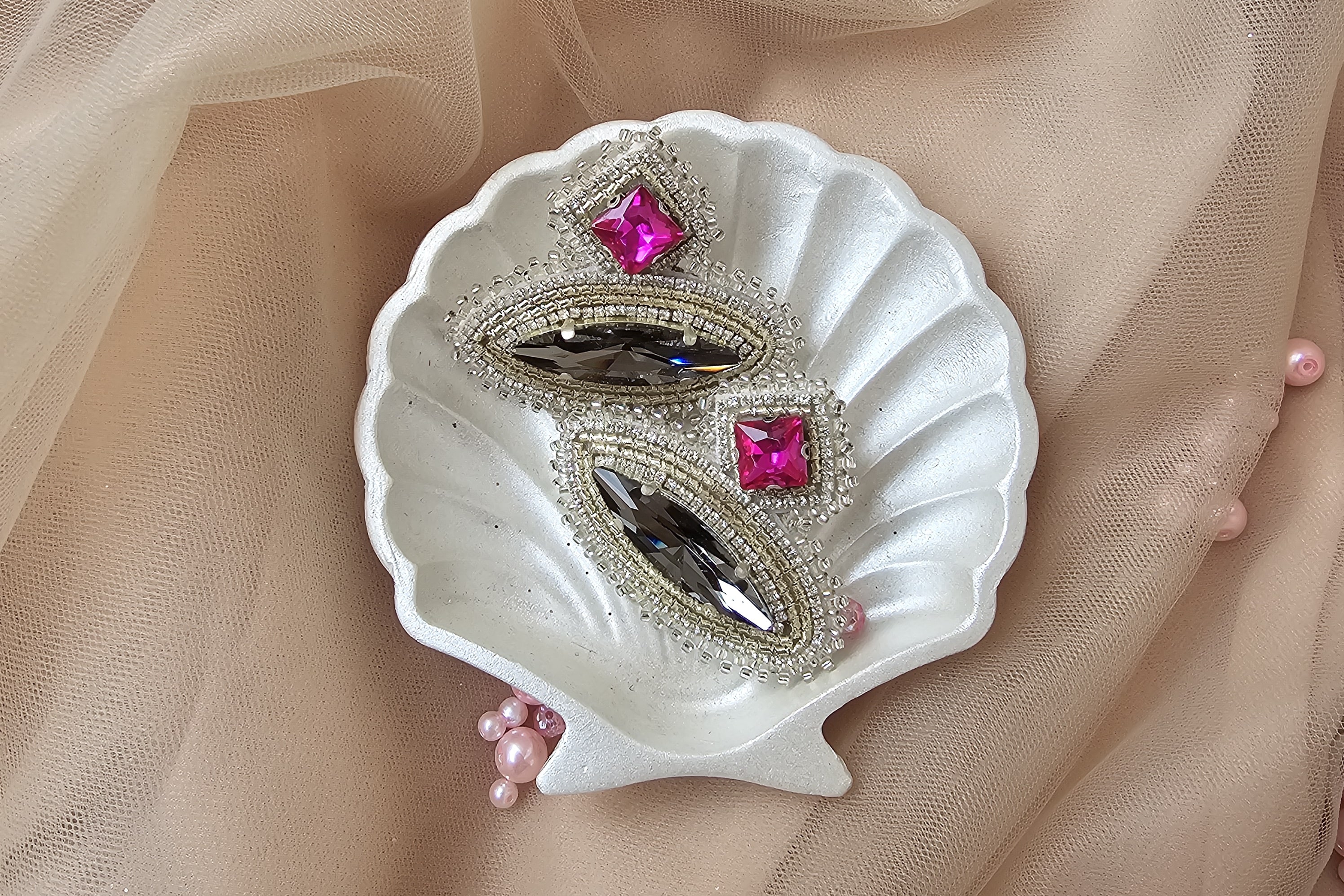 گوشواره دست ساز جواهردوزی زنانه با سنگ سرخابی و مارکیز دودی