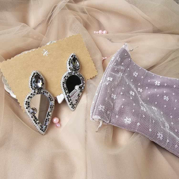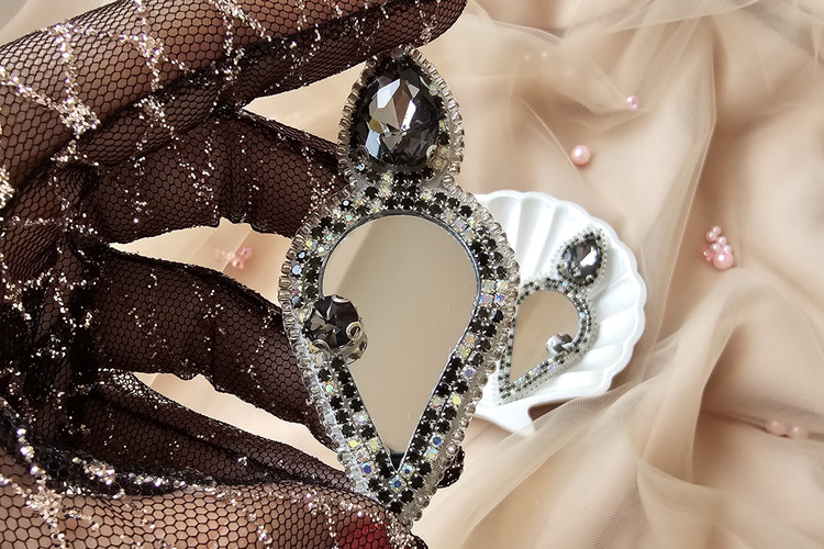 گوشواره دست ساز جواهردوزی زنانه با سنگ دودی،آینه و نگین