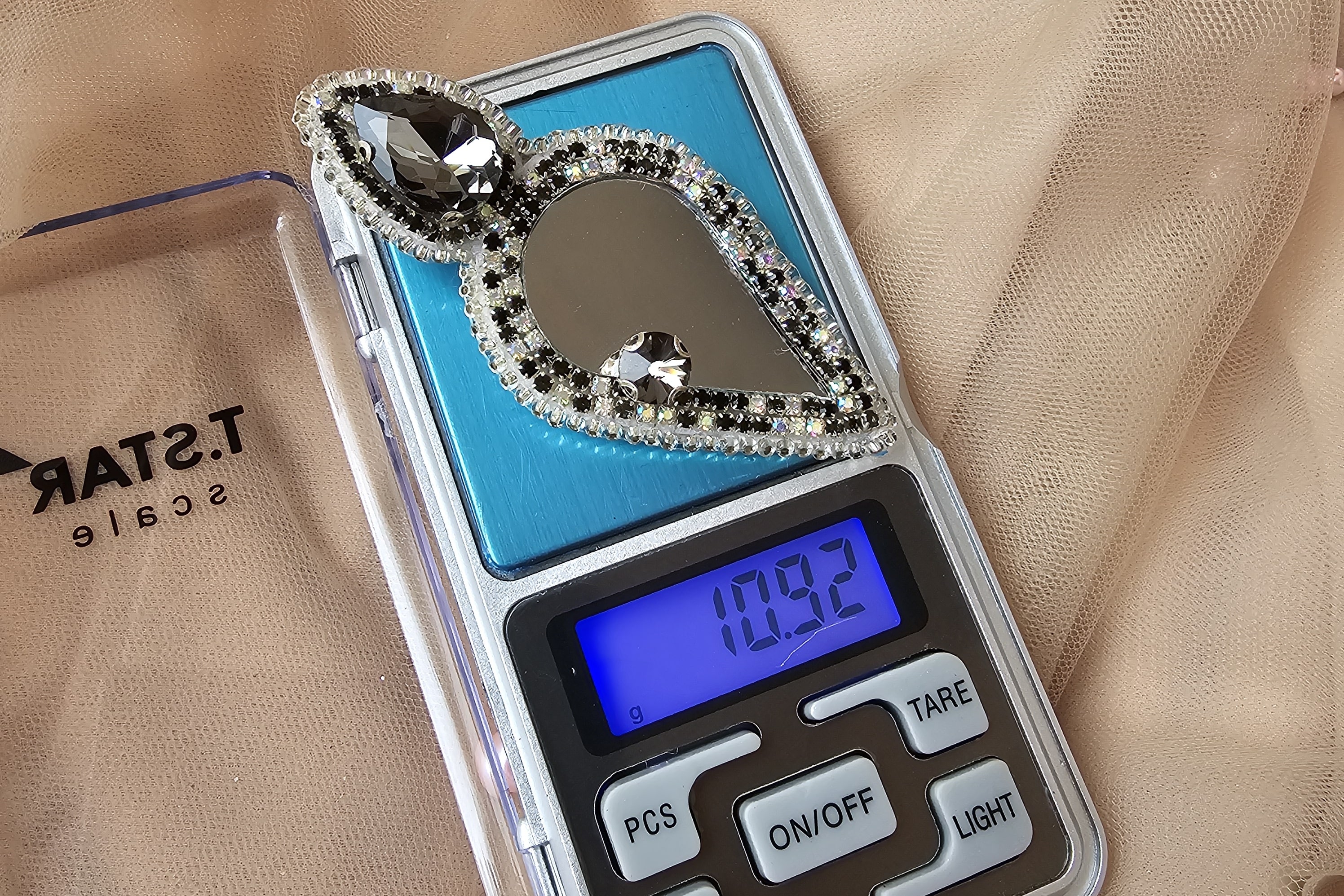 گوشواره دست ساز جواهردوزی زنانه با سنگ دودی،آینه و نگین