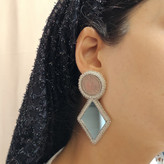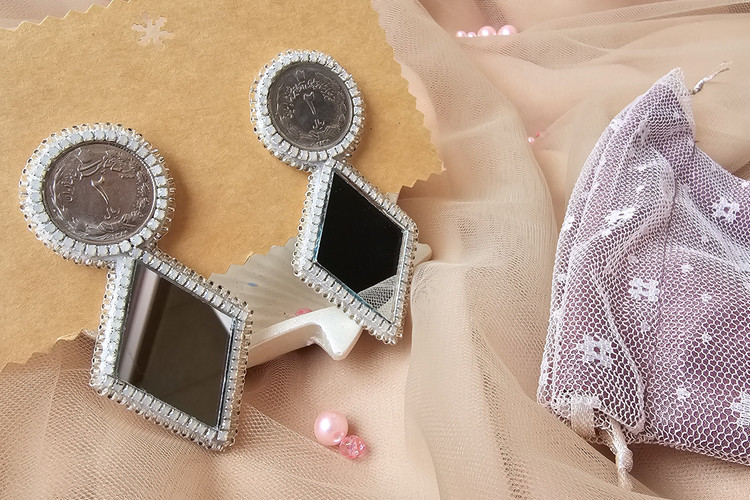 گوشواره دست ساز جواهردوزی زنانه با سکه 2 ریالی و آینه لوزی