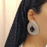 گوشواره دست ساز جواهردوزی زنانه با سنگ مشکی