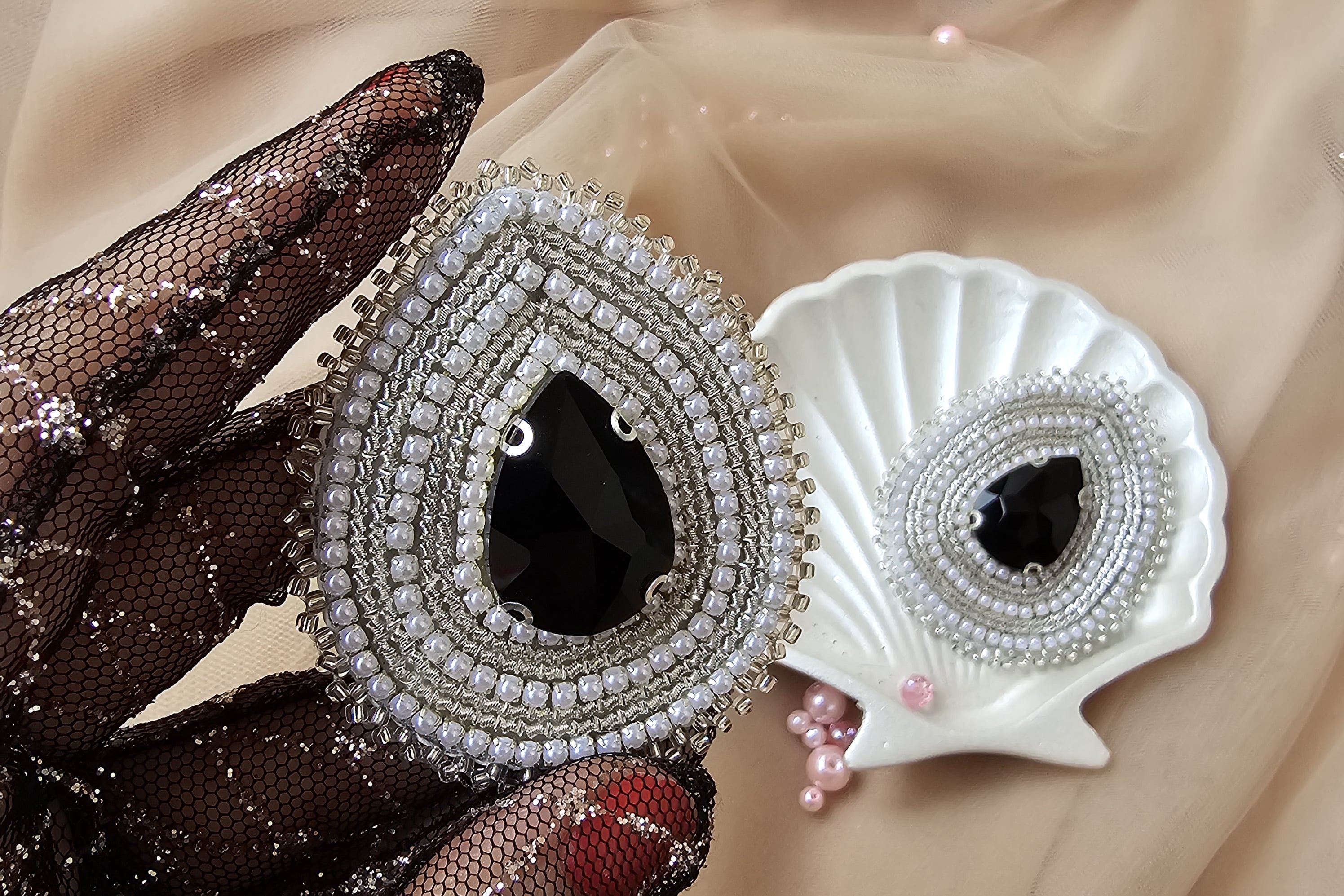 این گوشواره دست ساز با ظرافتی بی نظیر و هنر جواهردوزی ساخته شده است.در طراحی آن از متریال با کیفیت مانند مروارید ،سرمه ، سنگ، منجوق استفاده شده و پشت کار با چرم مرغوب دوخته و تمیزکاری شده تا علاوه بر زیبایی ،دوام بالایی داشته باشد. میخ گوشواره از جنس استیل ضد حساسیت انتخاب شده تا استفاده طولانی مدت راحت و بدون نگرانی باشد.سبک،خاص و درخشان؛ انتخابی برای کسانی که می خواهند در استایلشان متفاوت دیده شوند.
